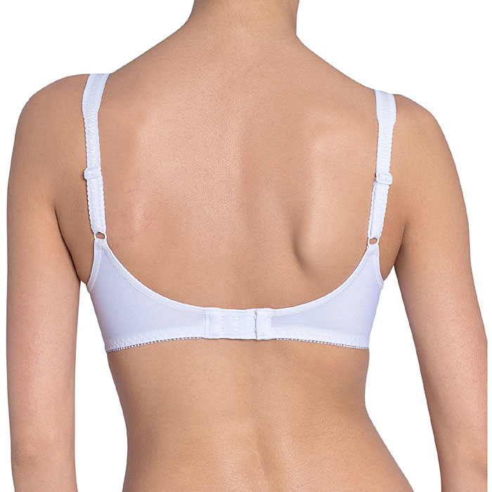 -Reggiseno "cross", dallo speciale incrocio elastico al centroseno che consente un perfetto adattamento a forme di seno differenziate.