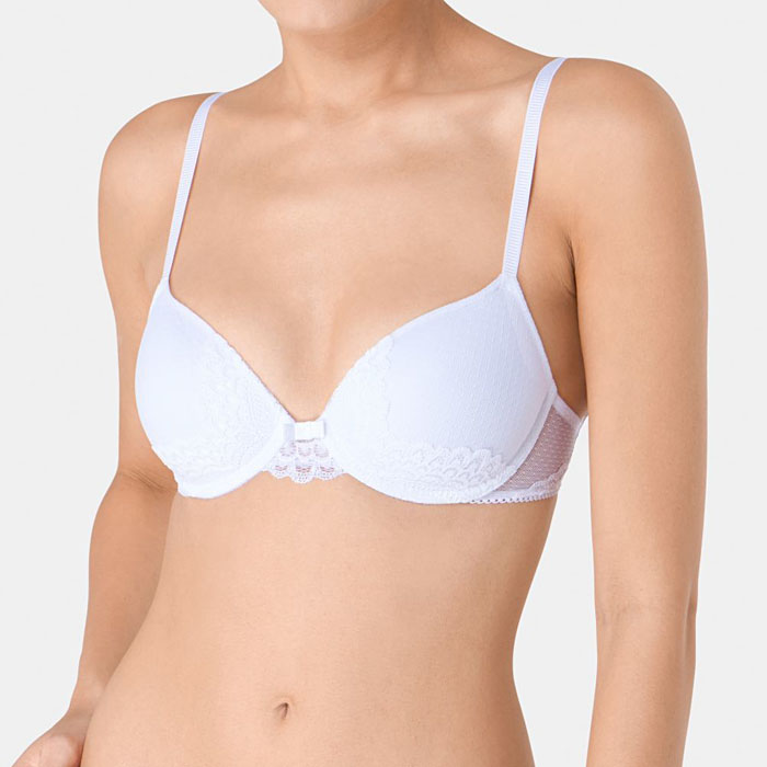 Reggiseno con ferretto minimizer con coppe preformate con prezioso pizzo.